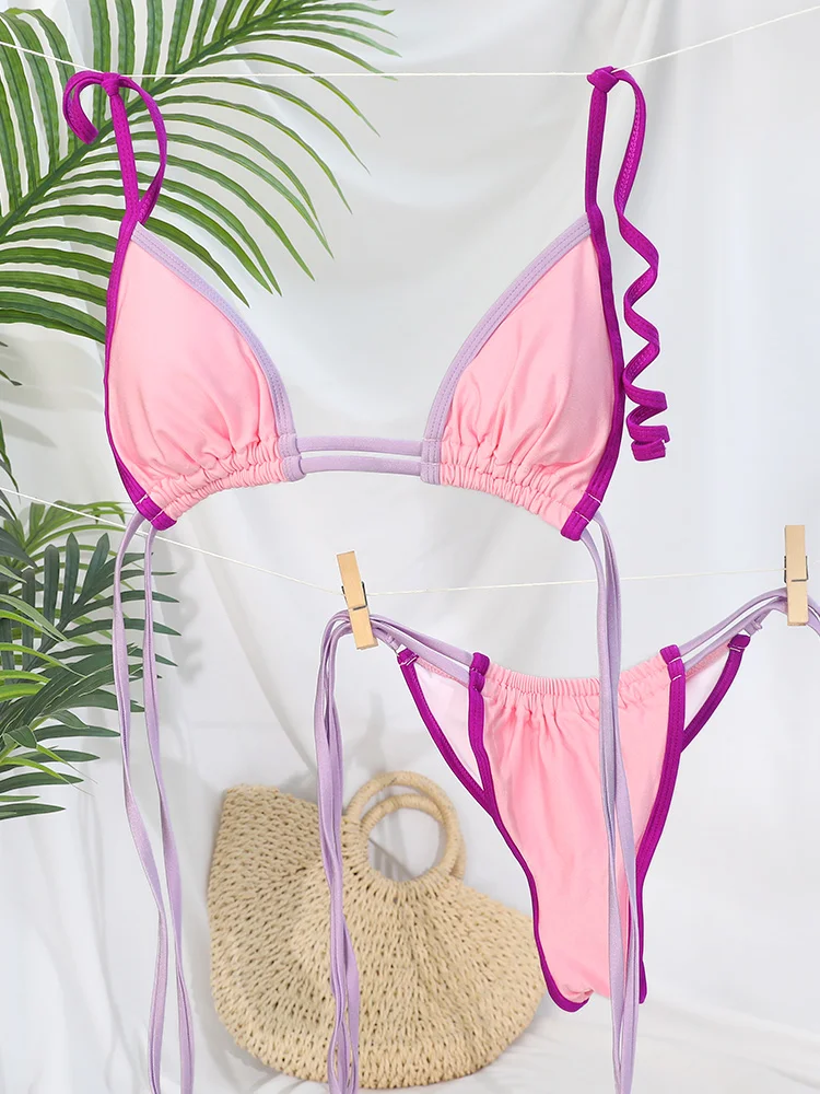 GiGiBikini Bandage Bikinis Patchwork Swimwear Sexy Bikini Set Triangle Swimsuit Women Micro Thong Push Up Beachwear Summer Biquini