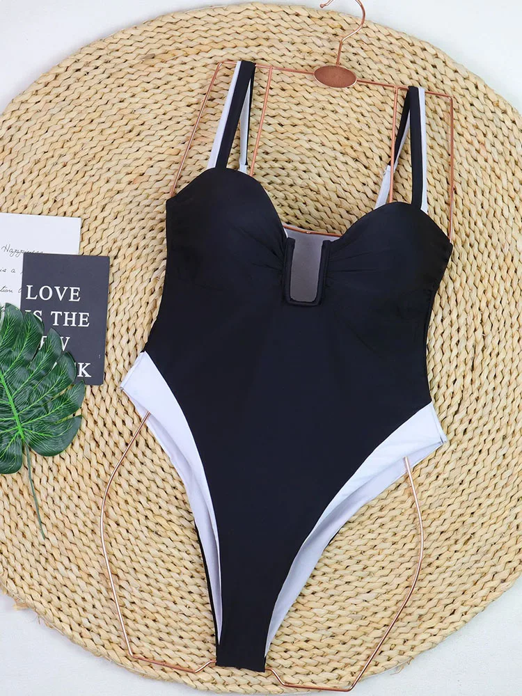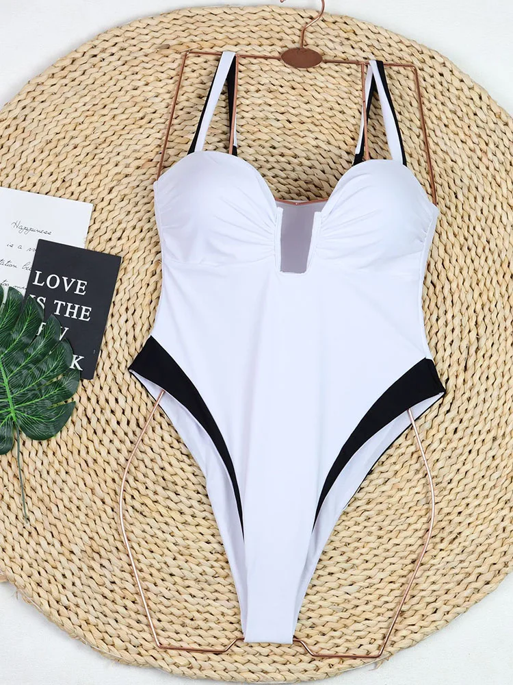 GiGiBikini Women Swimsuits Sexy One Piece Suit Patchwear Swimsuit High Cut Bathsuit Solid Color Swimwear New Beachwear 2024 Bodysuit