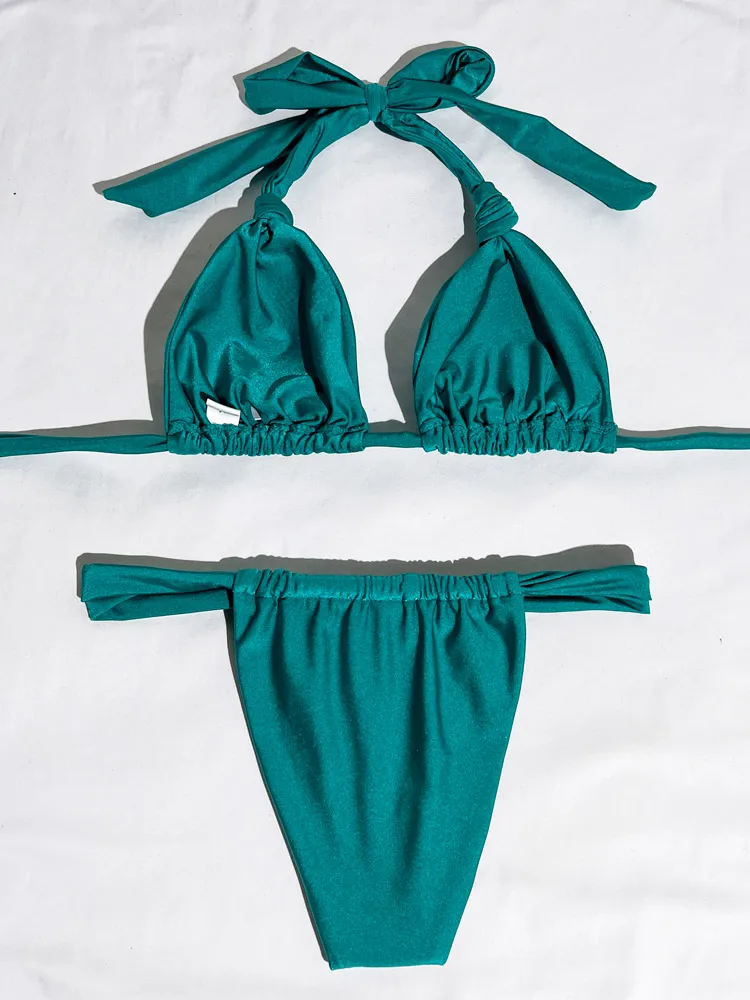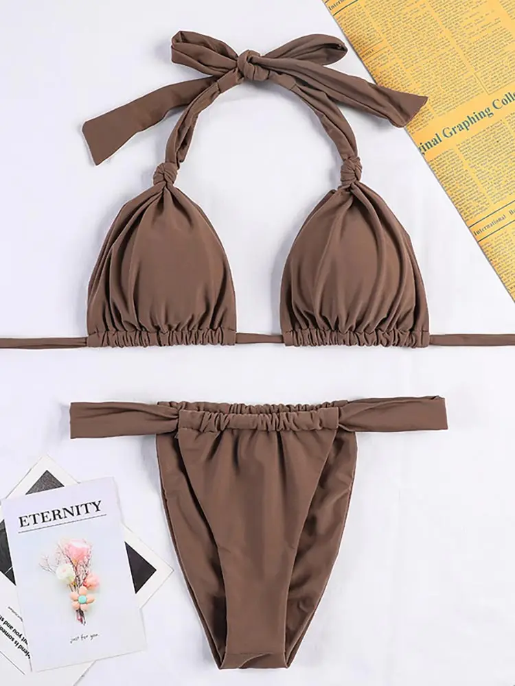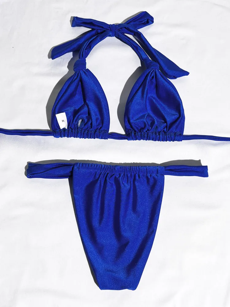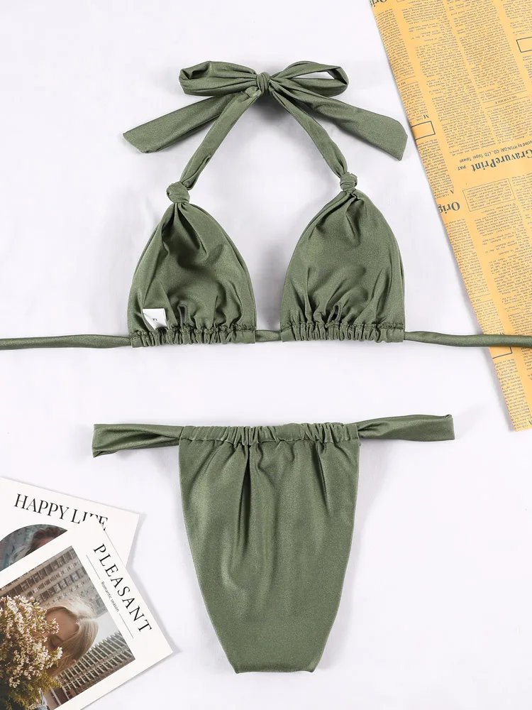 Low Waist Bikini Solid Color Swimwear Women Swimsuit Sexy Bikini Set 2024 Pleasted Beachwear Bandage Suits Mciro Thong Biquini